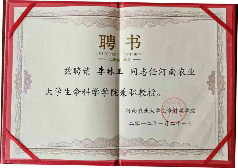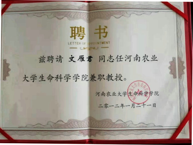 河南農(nóng)業(yè)大學(xué)生命科學(xué)學(xué)院聘請文雁君、李林正為兼職教授