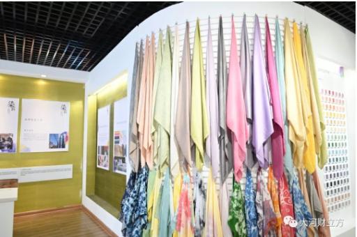 穿過(guò)展廳入口的七彩走廊,一個(gè)充滿(mǎn)童話(huà)色彩的世界展現(xiàn)在記者眼前。五彩斑斕的色素原料及成品,五顏六色的糖果、糕點(diǎn)和飲料,純植物色素印染、頗有些“莫蘭迪色”風(fēng)味的衣服與絲巾……